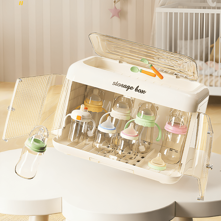 This baby bottle storage cabinet offers a hygienic and convenient solution for storing baby essentials. With a spacious, dustproof, and foldable design, it keeps bottles, cups, and tableware protected while being easy to set up and store, ensuring safe storage for your baby’s health.
