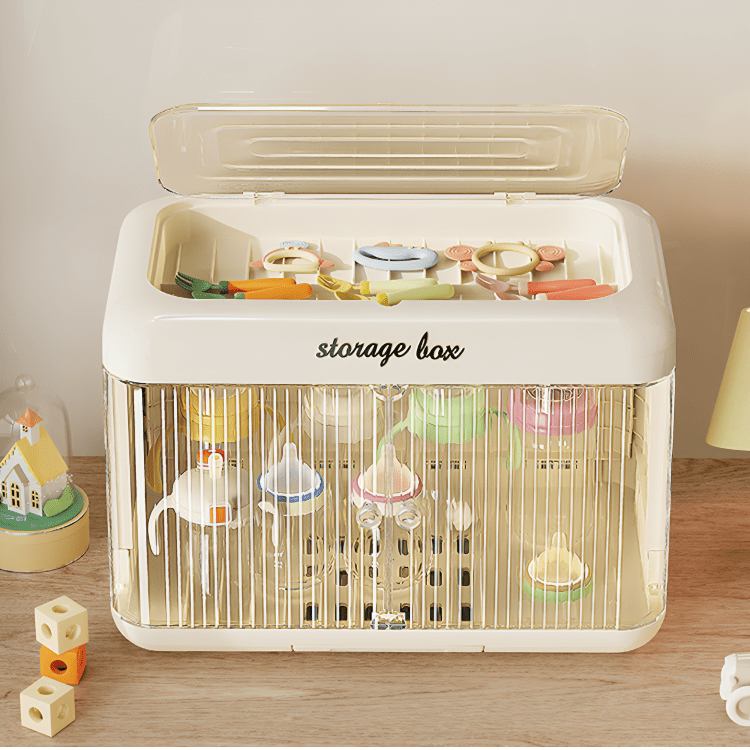 - Spacious Double-Layer Storage: Featuring a large capacity with a double-layer partition, this storage box can accommodate multiple baby items like bottles, cups, and utensils, helping you stay organized and maintain a clean, accessible setup.