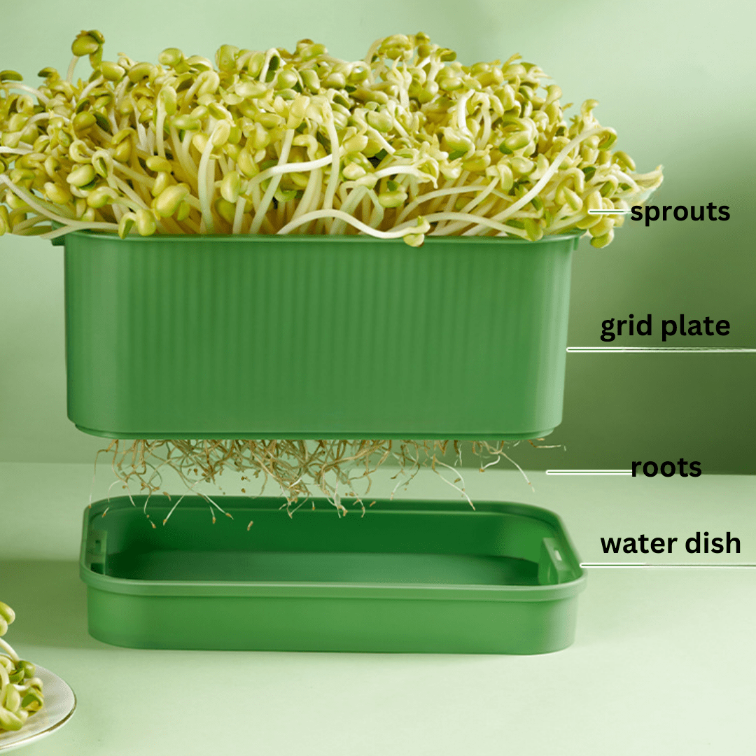 This pot is tailored to support the growth of soybean and mung bean sprouts but can also accommodate other seeds. Its design helps maintain consistent moisture and warmth, crucial for germination and healthy sprout growth.