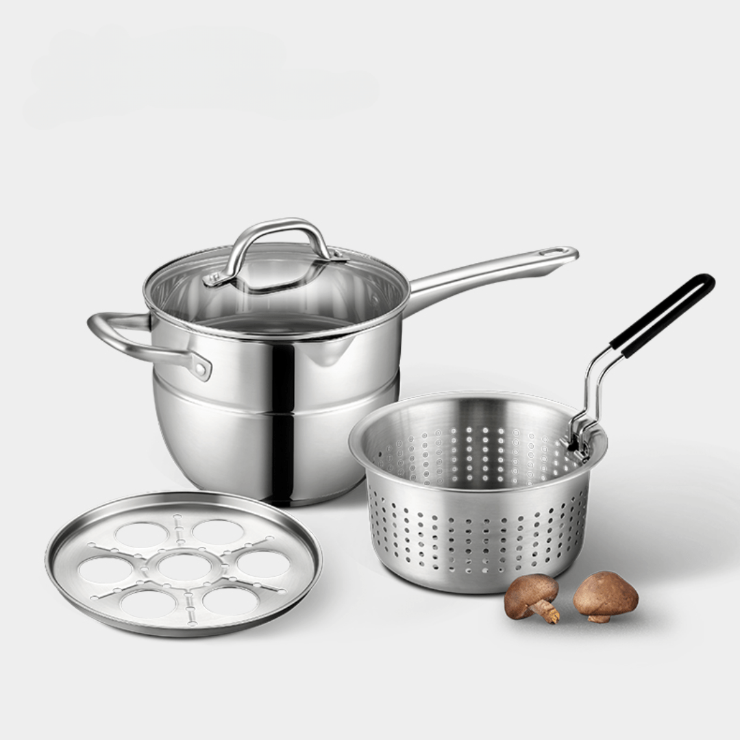 This multi-functional cooking pot is designed for convenience and efficiency in the kitchen. With a no-drip spout for clean pouring, a durable three-layer composite base, and compatibility with a variety of stoves, it delivers even heat distribution for perfectly cooked meals. The tempered glass lid and deep frying basket make it ideal for steaming, frying, and blanching, while the foldable, anti-scalding handle provides easy storage. The reinforced rivet ensures durability, making it perfect for daily use
