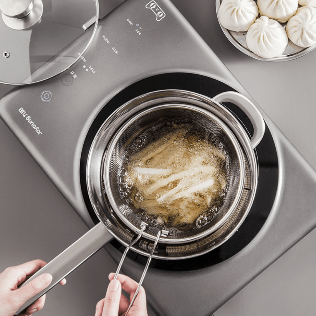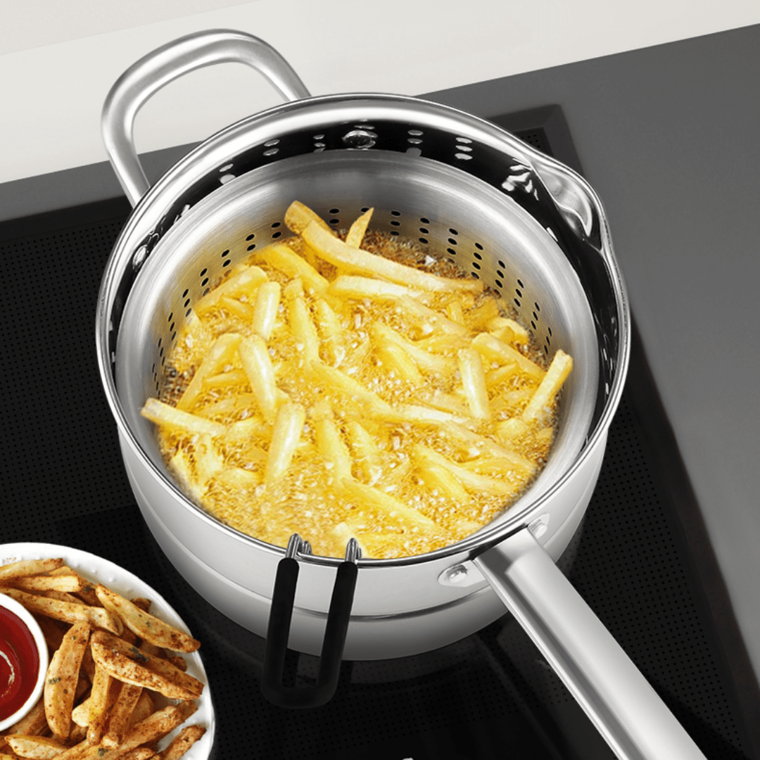 - Multi-Function Deep Frying Basket: The included deep basket doubles as a colander for blanching, straining, and draining foods like vegetables, pasta, and fried foods.
