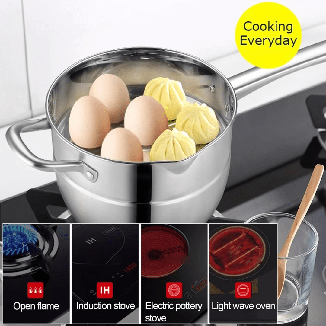 - Three-Layer Composite Base: A combination of aluminum and stainless steel offers even heat distribution across various stoves, including induction, open flames, and electric.