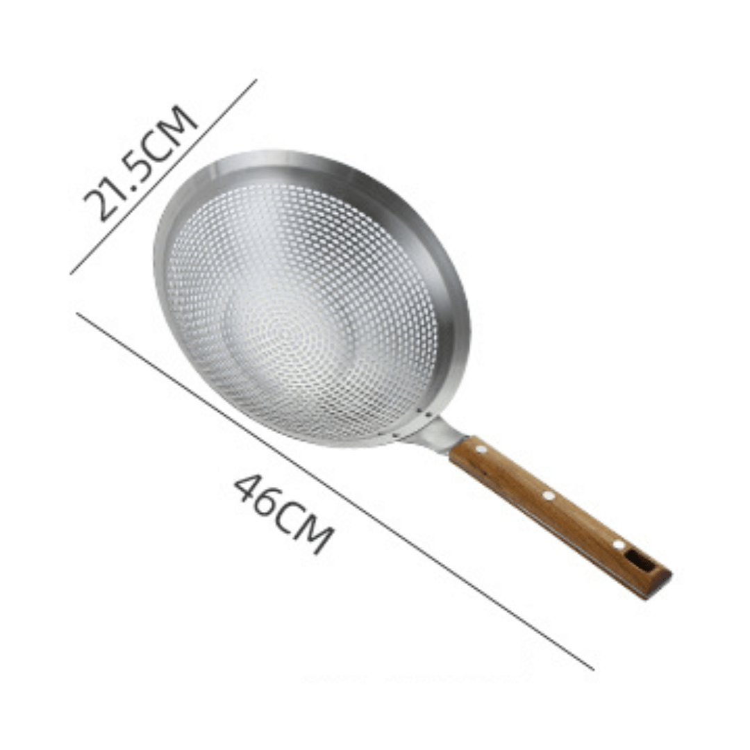 - Wide Strainer Basket: The 30cm large size and refined mesh design allow quick straining of noodles, frying oil, and other foods without leaving residue, offering efficient and clean performance.