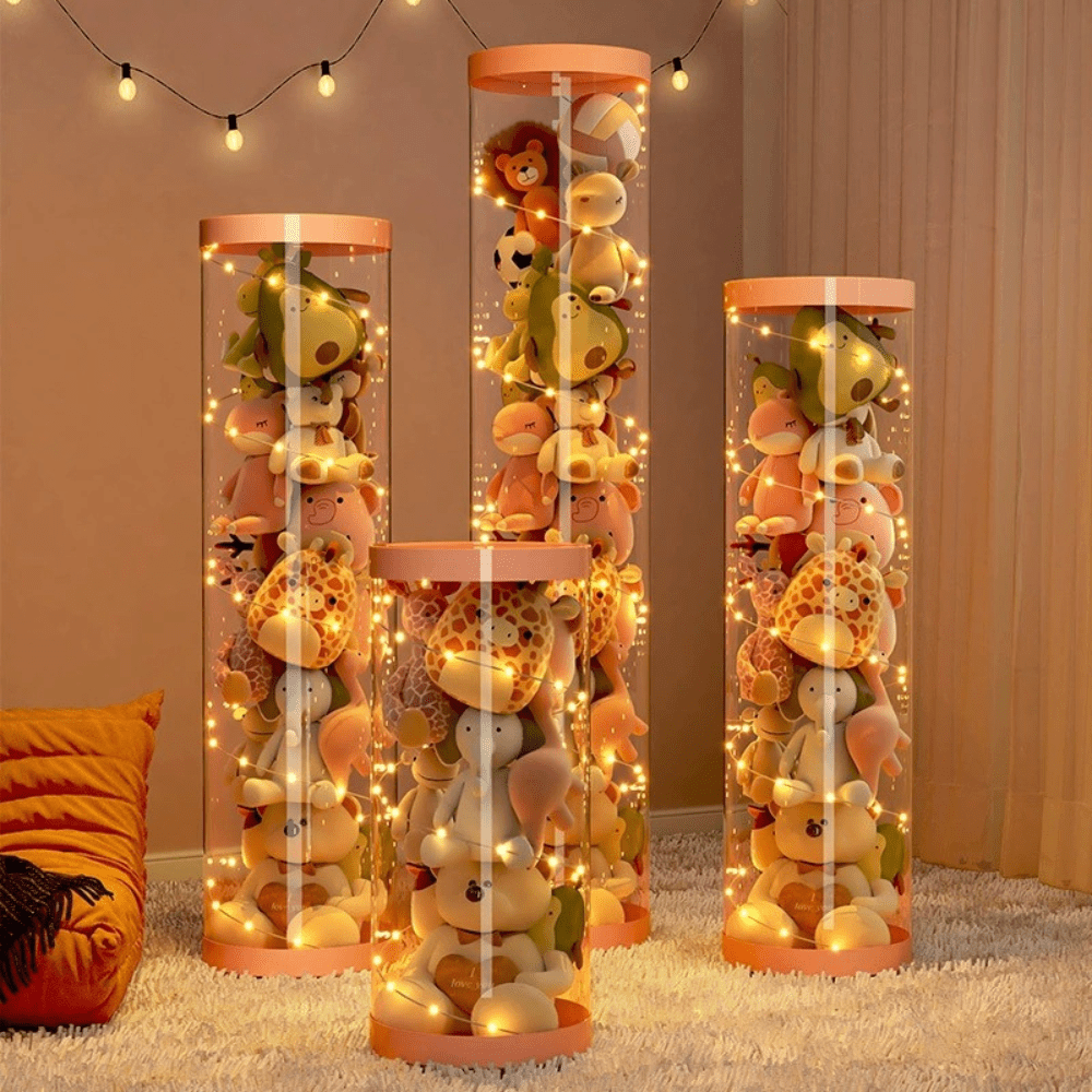 Transparent Display: The transparent design of the bucket allows you to see your plush toys at all times. It also adds a decorative touch to any room, making it ideal for home storage, plush animal storage, and kids' room organization.